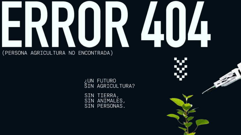 ERROR 404: ¿Preparados para un mundo sin agricultor@s? es la nueva campaña de Justicia Alimentaria que denuncia que nos exponemos a un futuro incierto si damos todo el poder a la agricultura tecnificada que no ha demostrado su eficiencia y cuyo objetivo es el control de la cadena agroalimentaria y continuar con el uso y consumo masivo de agroquímicos.