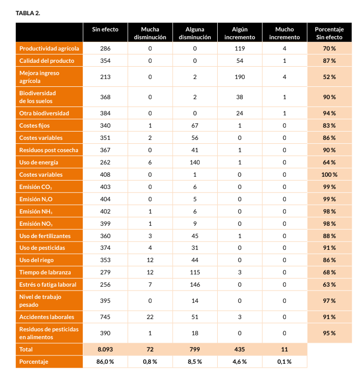 Quizás el resultado más interesante es ver, para todos los aspectos que se están investigando o vendiendo, si hay algún efecto o no (ver tabla 2).